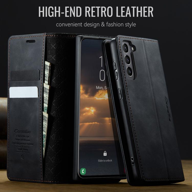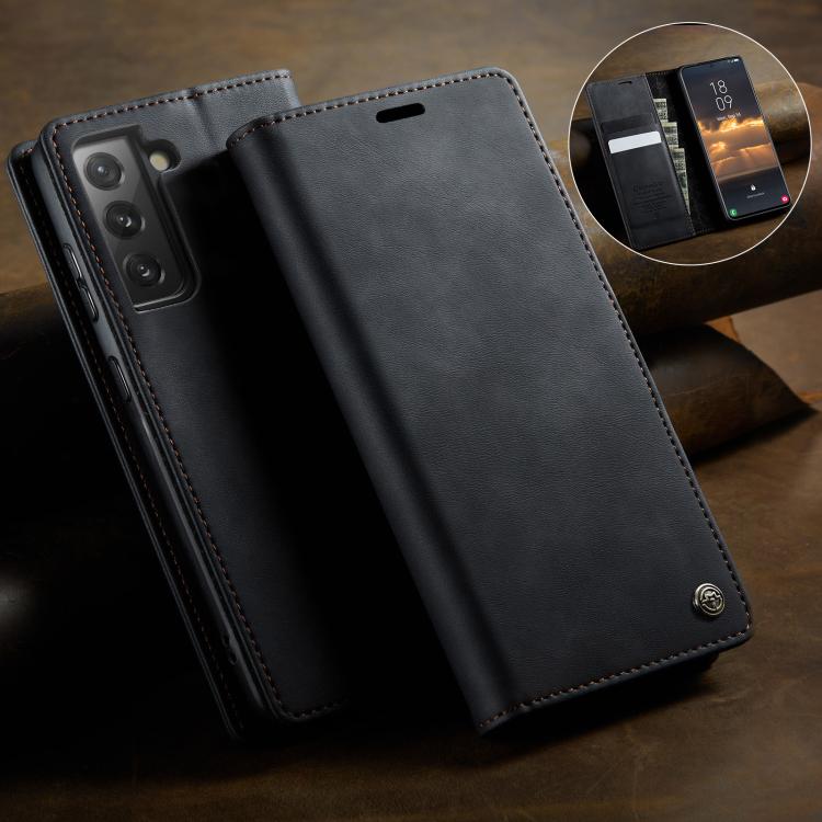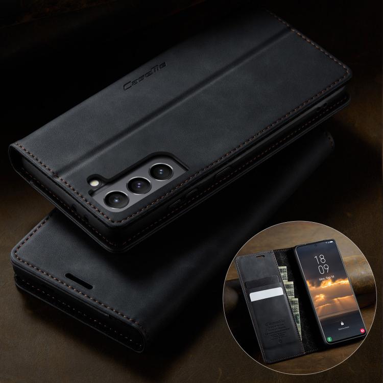 For Samsung Galaxy S21+ 5G CaseMe 033 Calf Leather Lining Microfibre RFID Blocking Phone Case(Black)