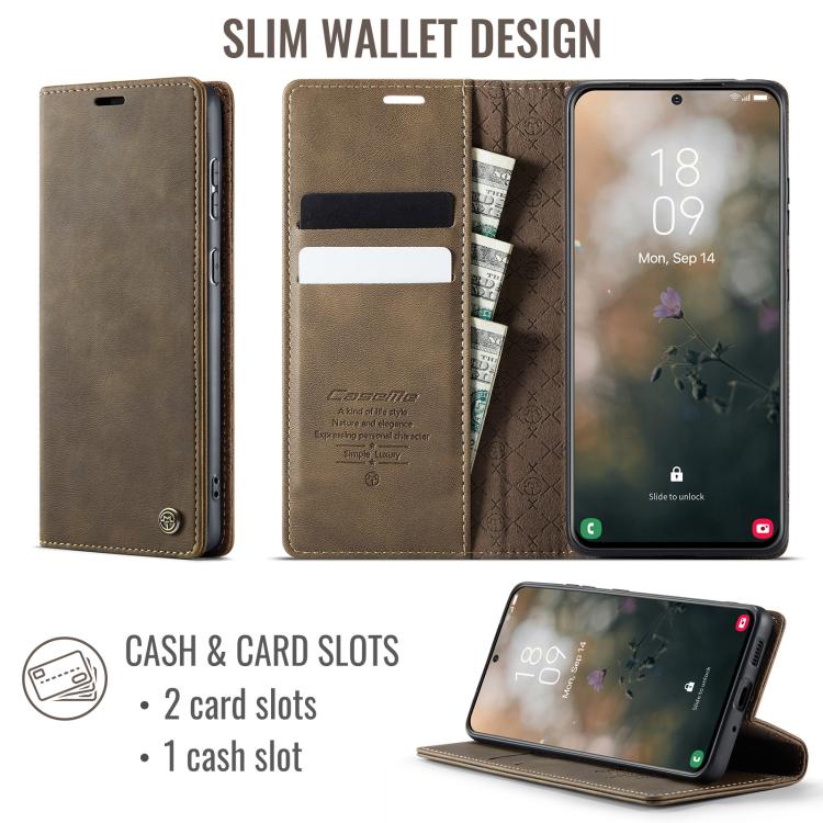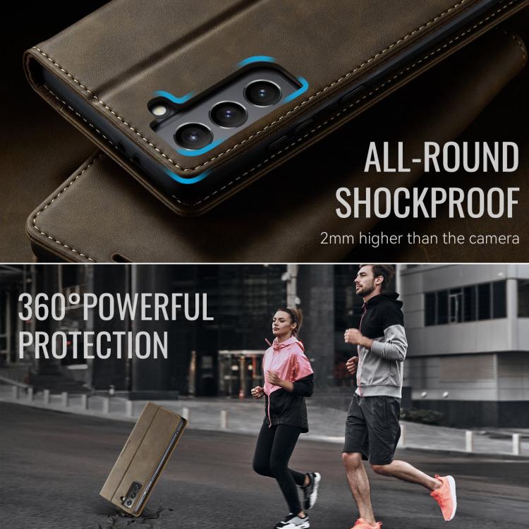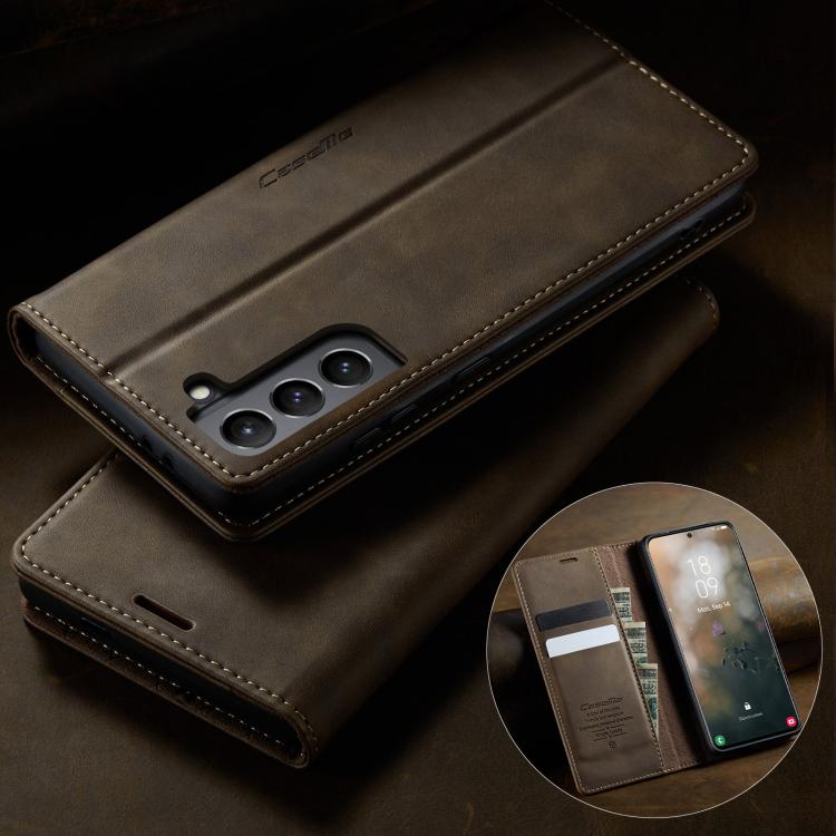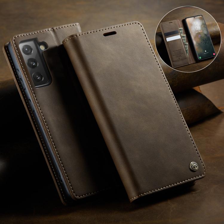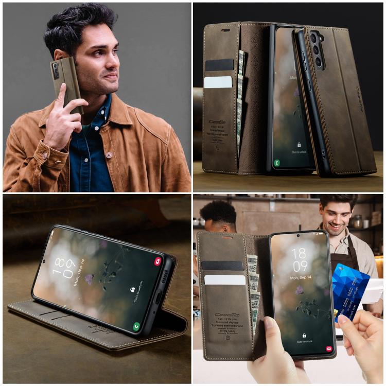 For Samsung Galaxy S21+ 5G CaseMe 033 Calf Leather Lining Microfibre RFID Blocking Phone Case(Coffee)