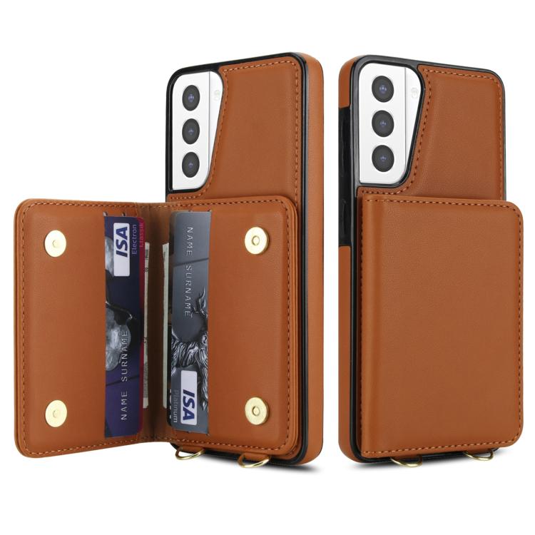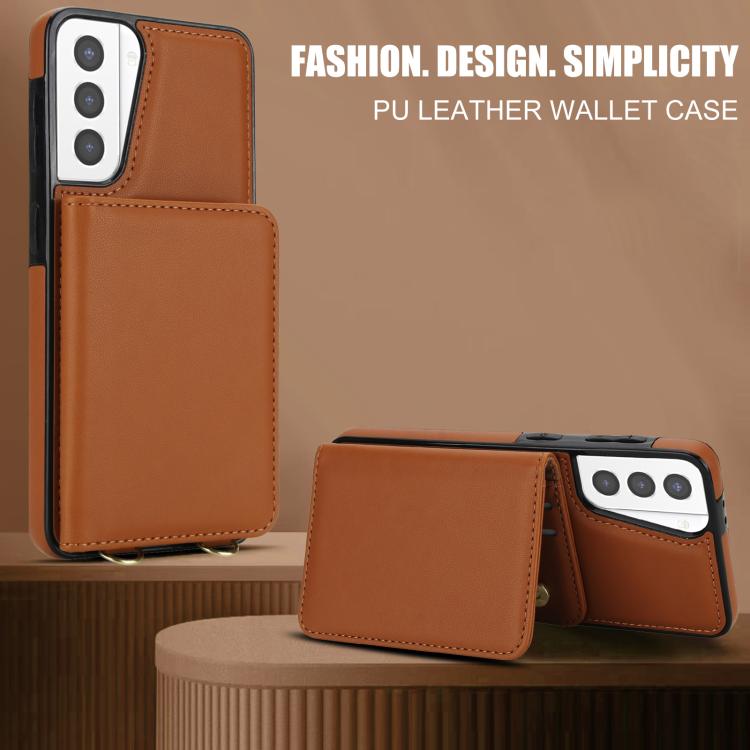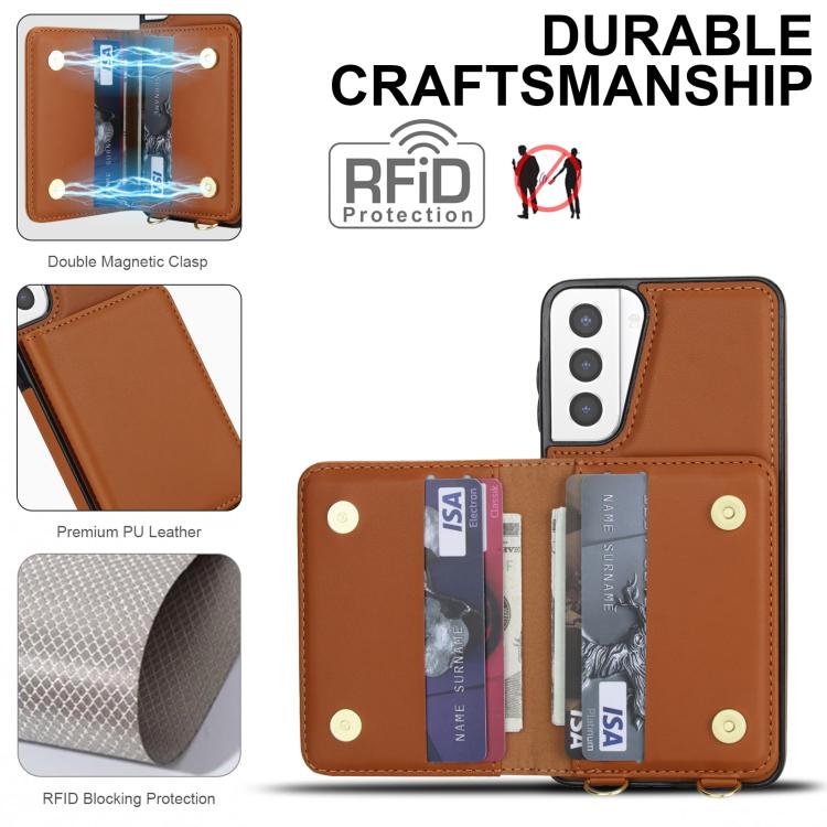 For Samsung Galaxy S21 5G Crossbody Dual-buckle Wallet RFID Back Leather Phone Case(Brown)