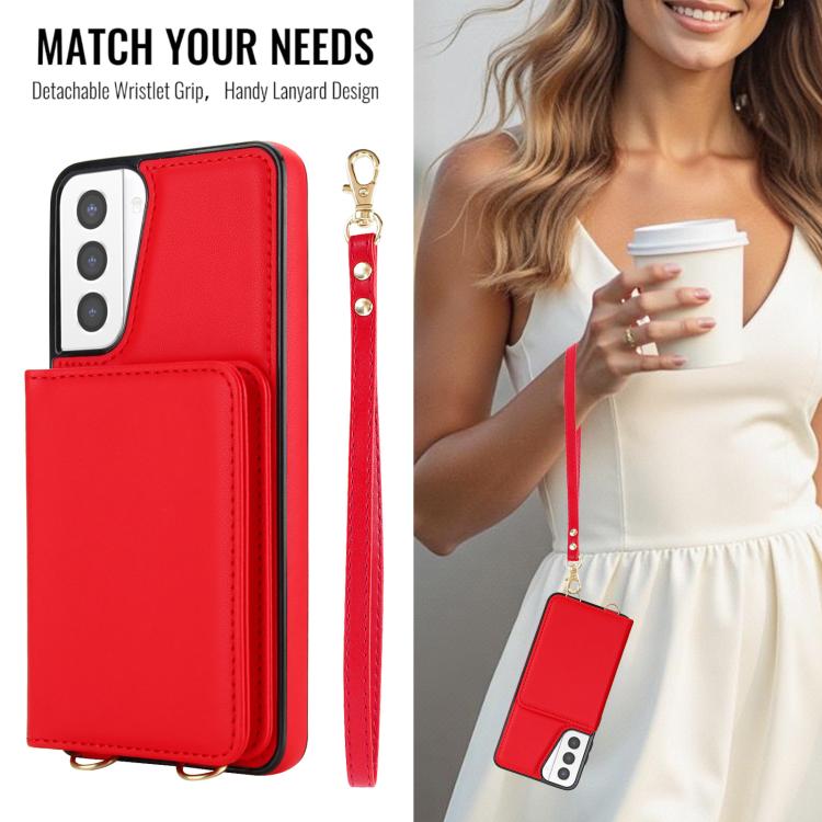 For Samsung Galaxy S21 5G Crossbody Dual-buckle Wallet RFID Back Leather Phone Case(Red)