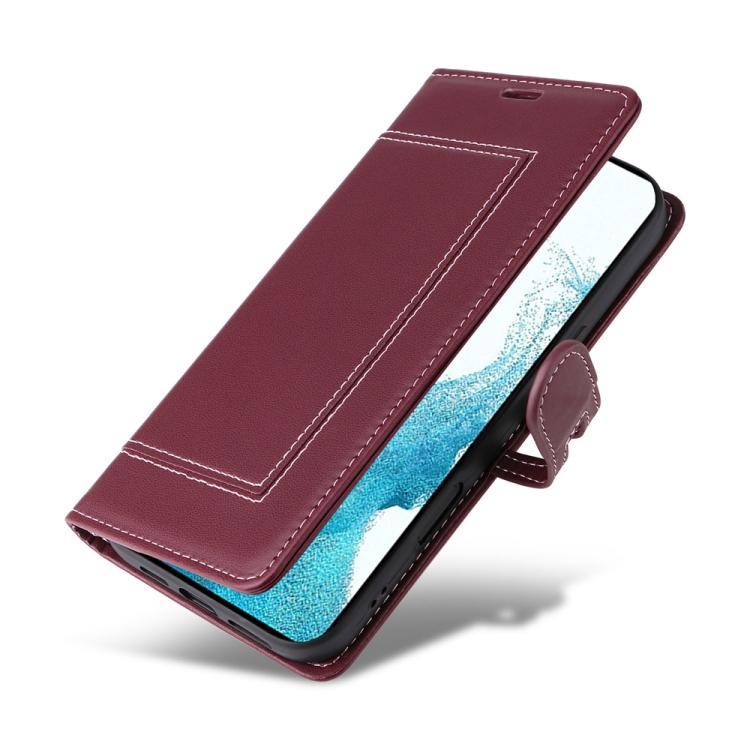 For Samsung Galaxy S21+ 5G Stitched Magnetic Buckle Leather Phone Case(Red)