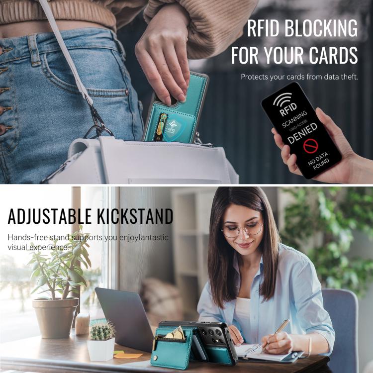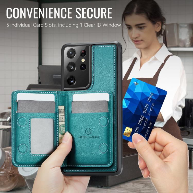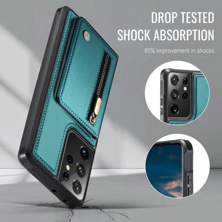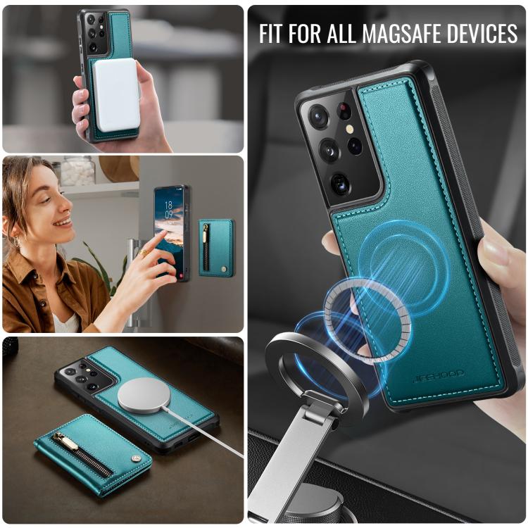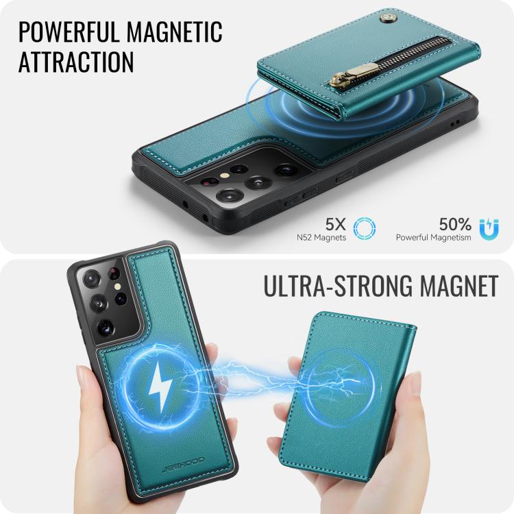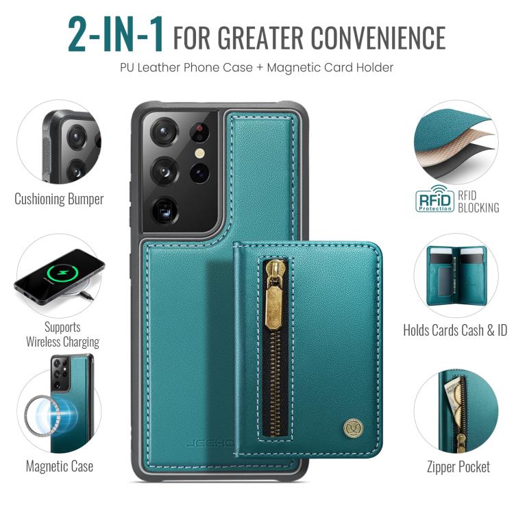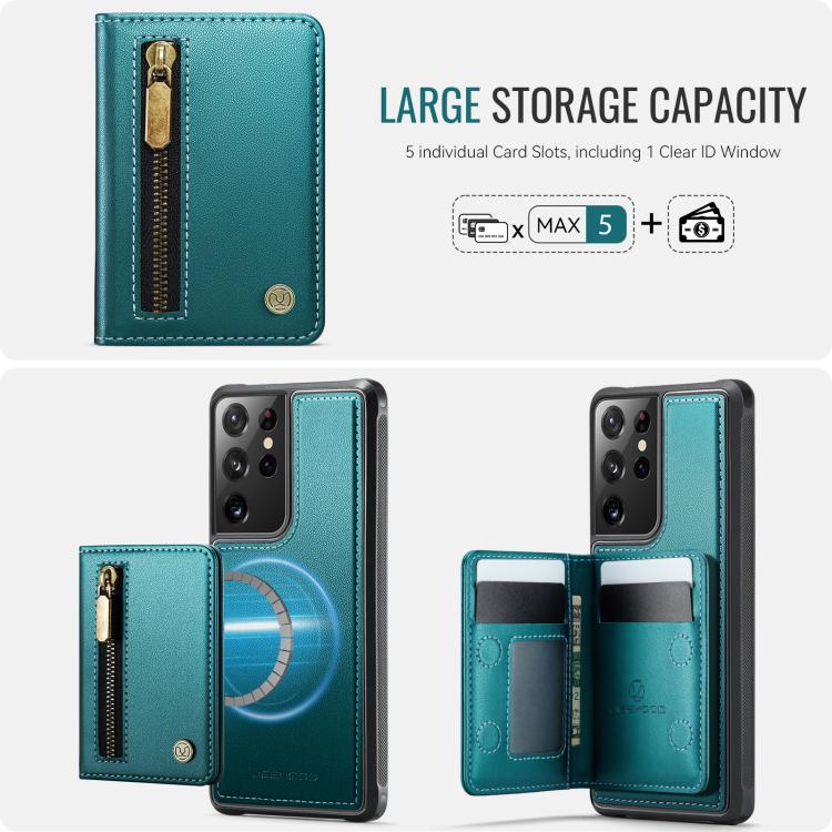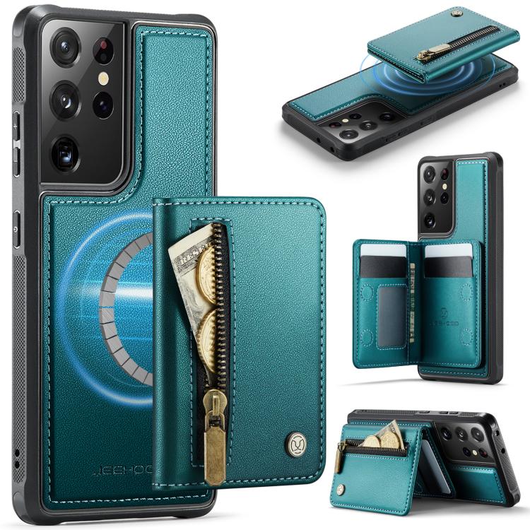 For Samsung Galaxy S21 Ultra 5G JEEHOOD J12 Exquisite RFID MagSafe Zipper Card Bag Phone Case(Green)