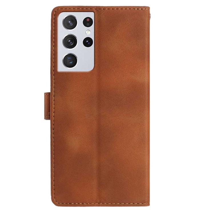 For Samsung Galaxy S21 Ultra 5G Skin Feel Embossed Feather Leather Phone Case(Brown)