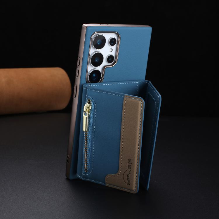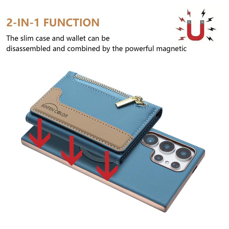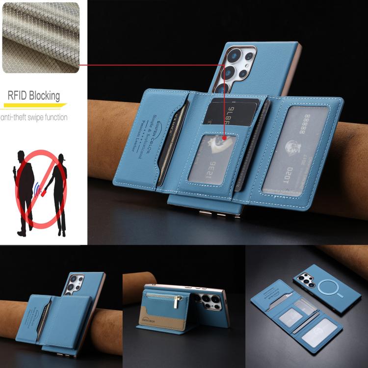 For Samsung Galaxy S21 Ultra 5G Zipper Horizontal Magnetic Card Bag RFID MagSafe Phone Case(Baby Blue)