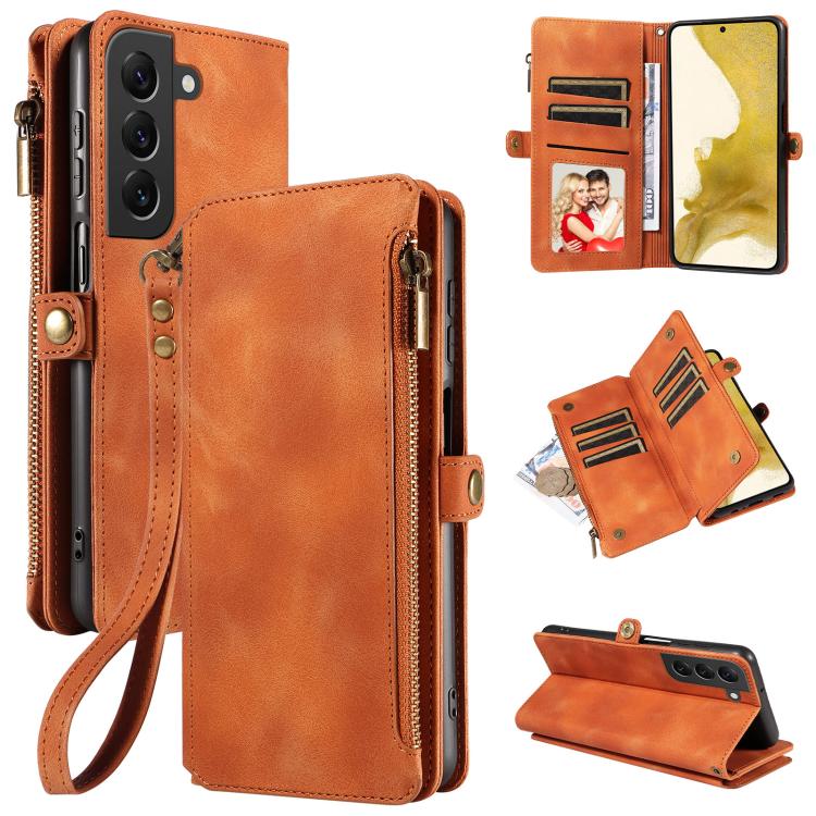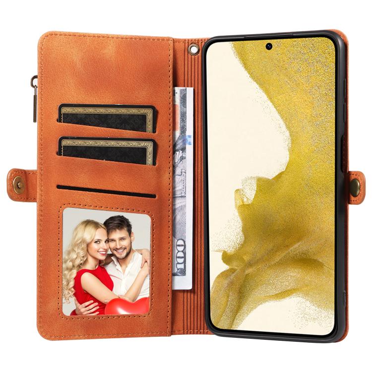 For Samsung Galaxy S22+ 5G Fantasy Multifunctional Zipper Wallet Leather Phone Case(Brown)