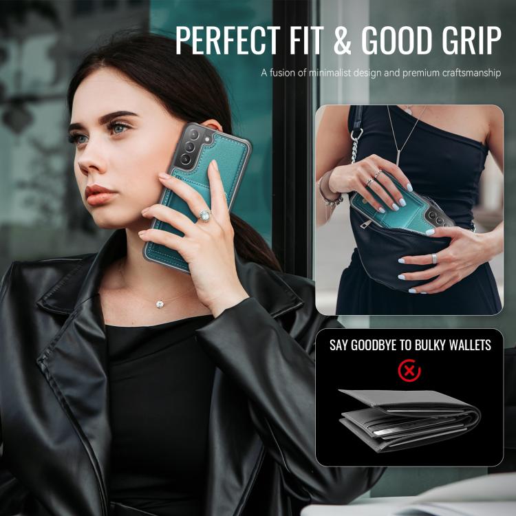 For Samsung Galaxy S22+ 5G JEEHOOD J09 Buckle Card Bag MagSafe Magnetic Style RFID Leather Phone Case(Green)