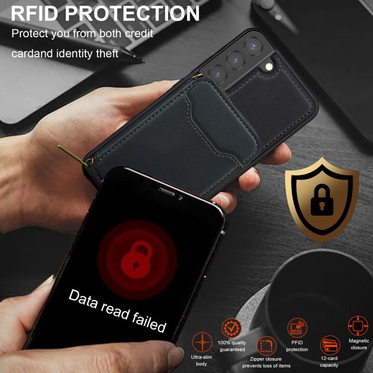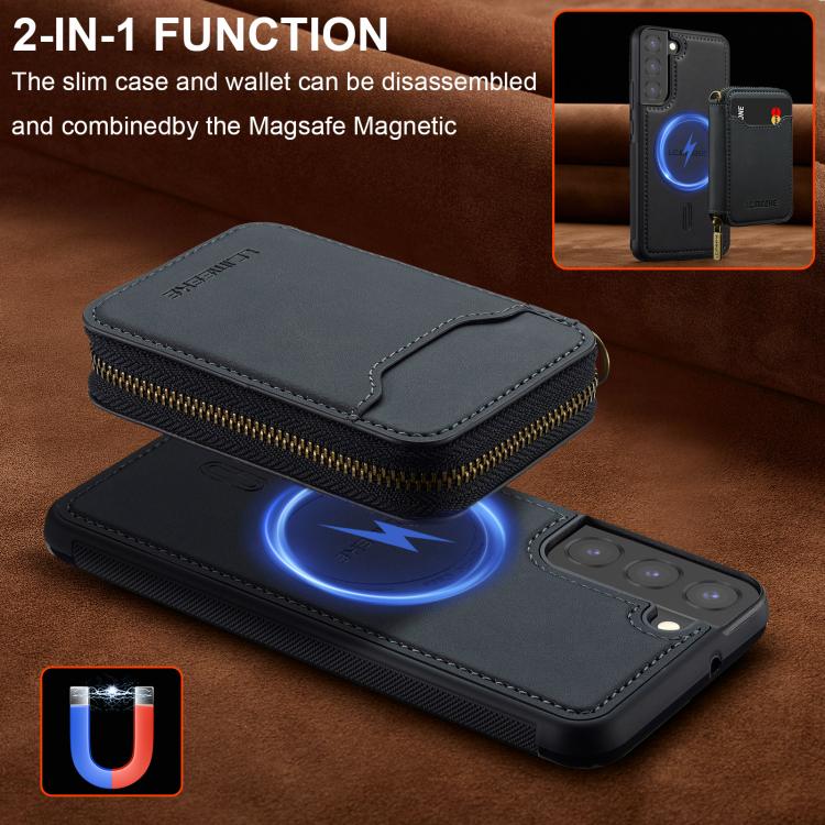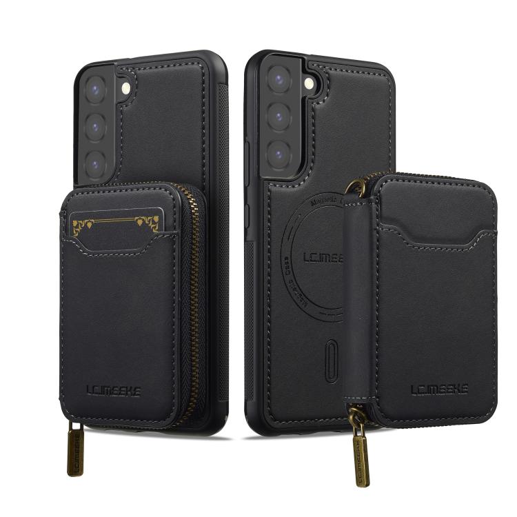 For Samsung Galaxy S22+ 5G LC.IMEEKE L6 Series Zipper Card Bag MagSafe Magnetic Phone Case(Black)