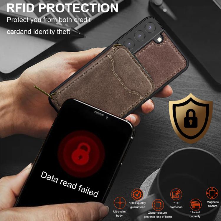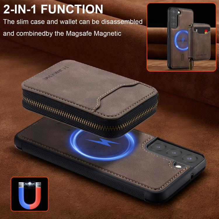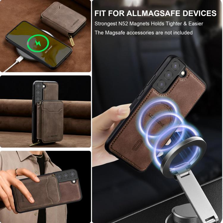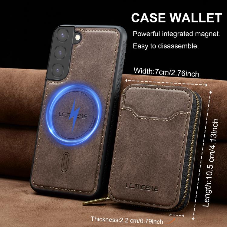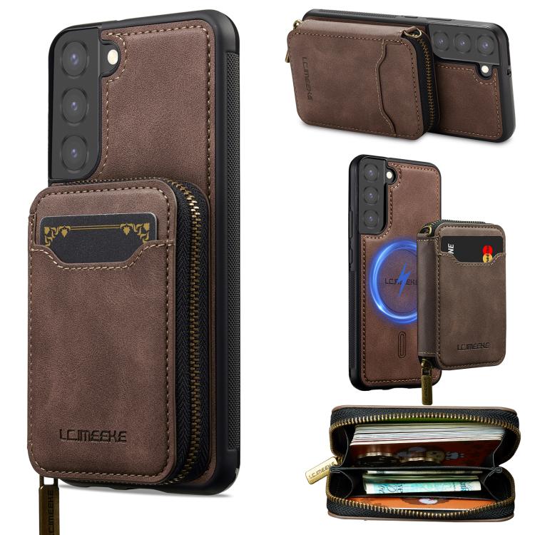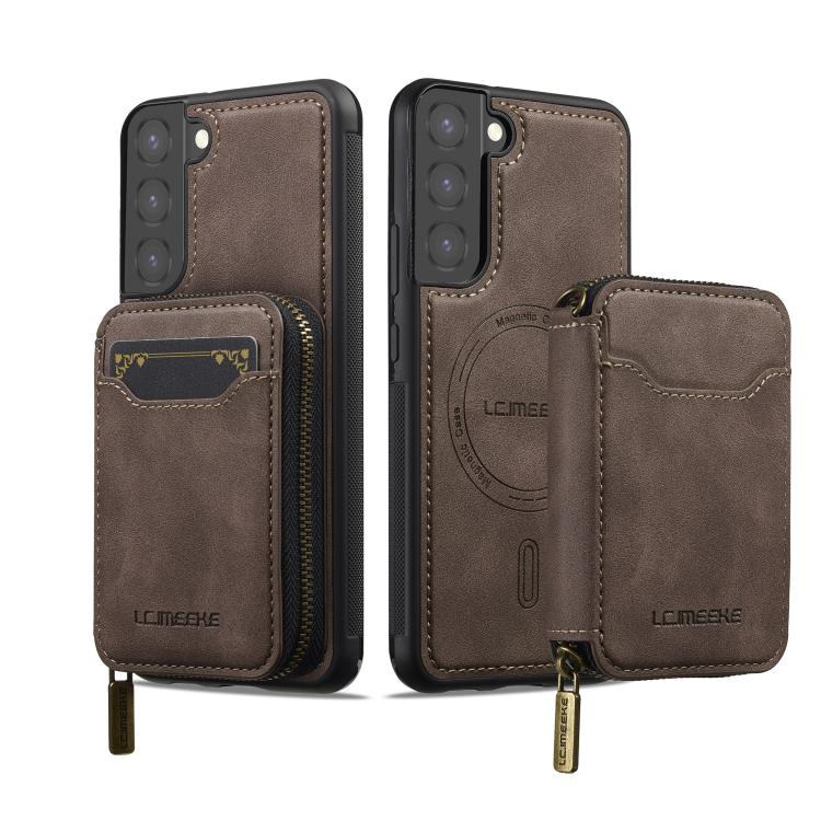 For Samsung Galaxy S22+ 5G LC.IMEEKE L6 Series Zipper Card Bag MagSafe Magnetic Phone Case(Coffee)