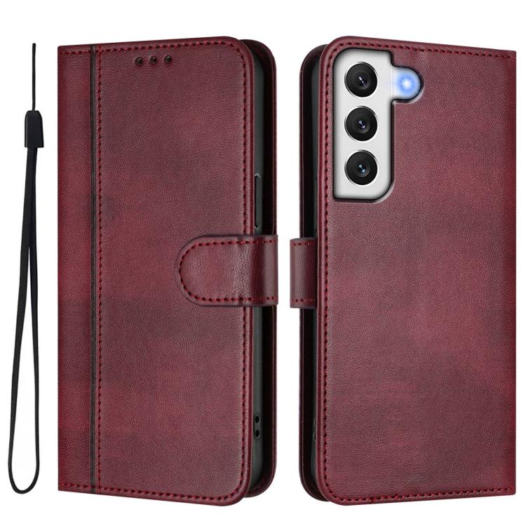 For Samsung Galaxy S22+ 5G Line Splicing Buckle Retro Leather Phone Case(Wine Red)