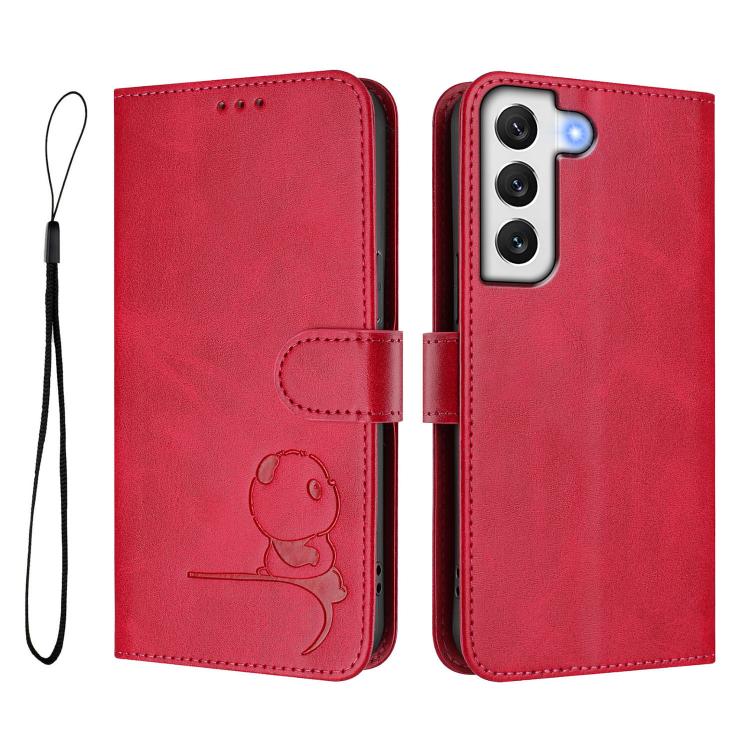 For Samsung Galaxy S22+ 5G Litter Panda Embossing RFID Leather Phone Case with Lanyard(Rose Red)