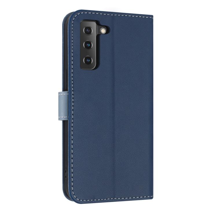 For Samsung Galaxy S22+ 5G Metal Bow Leather Phone Case with Hand Strap(Dark Blue)