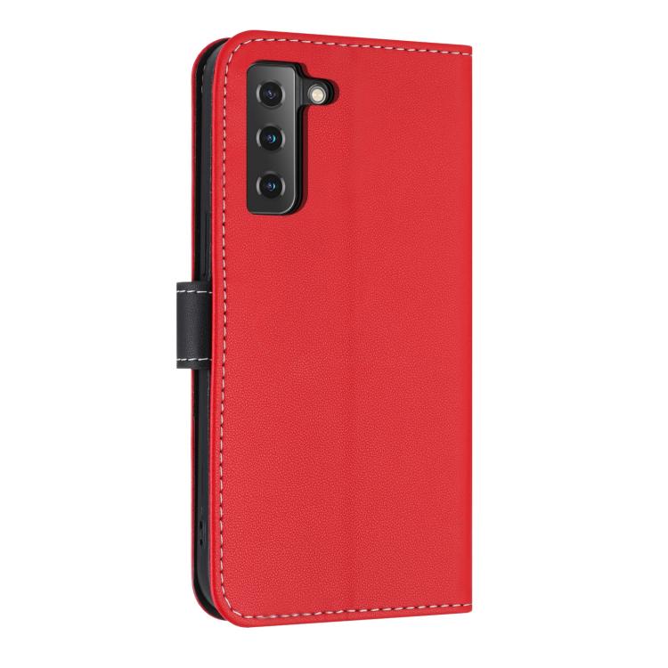 For Samsung Galaxy S22+ 5G Metal Bow Leather Phone Case with Hand Strap(Red)