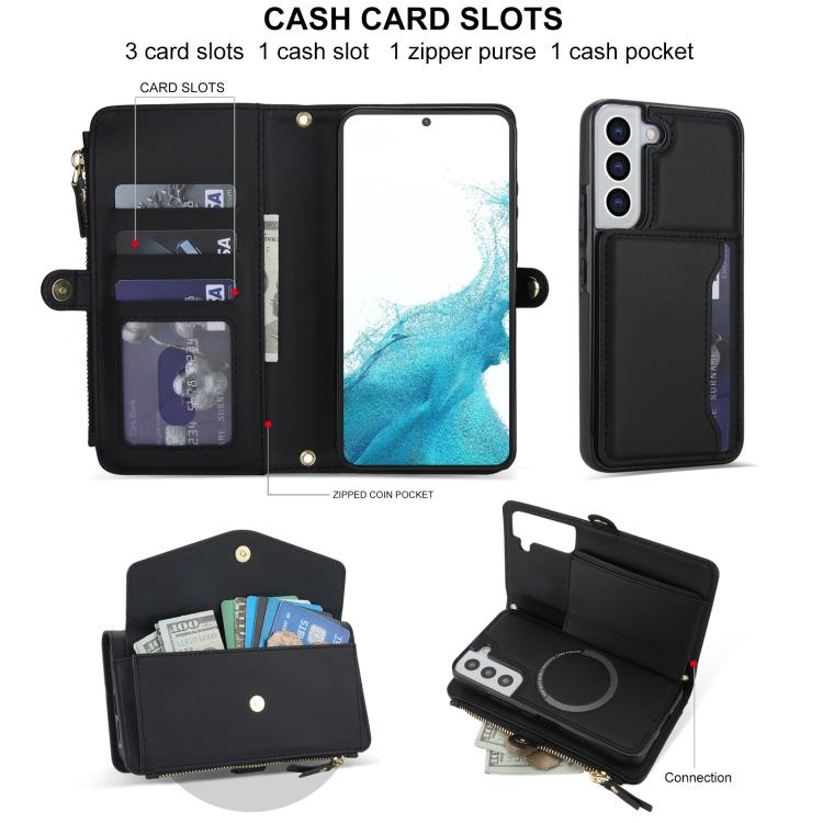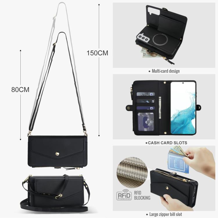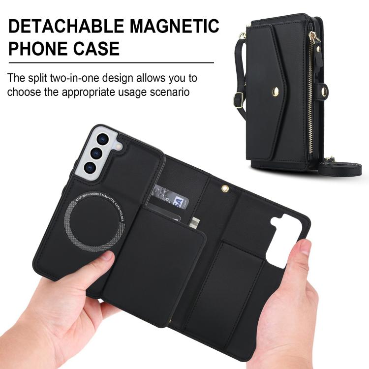For Samsung Galaxy S22+ 5G Multifunctional Wallet Detachable Leather Phone Case with Lanyard(Black)