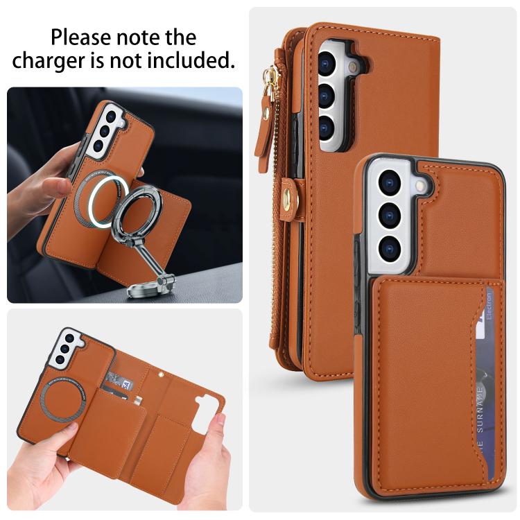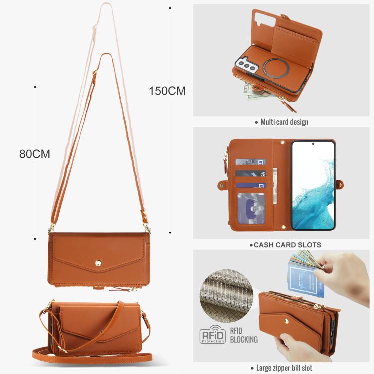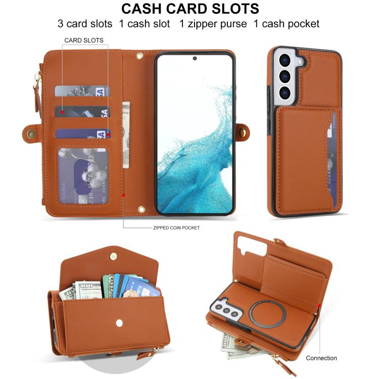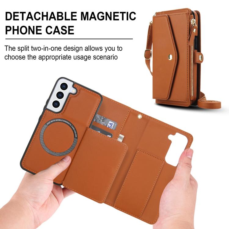 For Samsung Galaxy S22+ 5G Multifunctional Wallet Detachable Leather Phone Case with Lanyard(Brown)