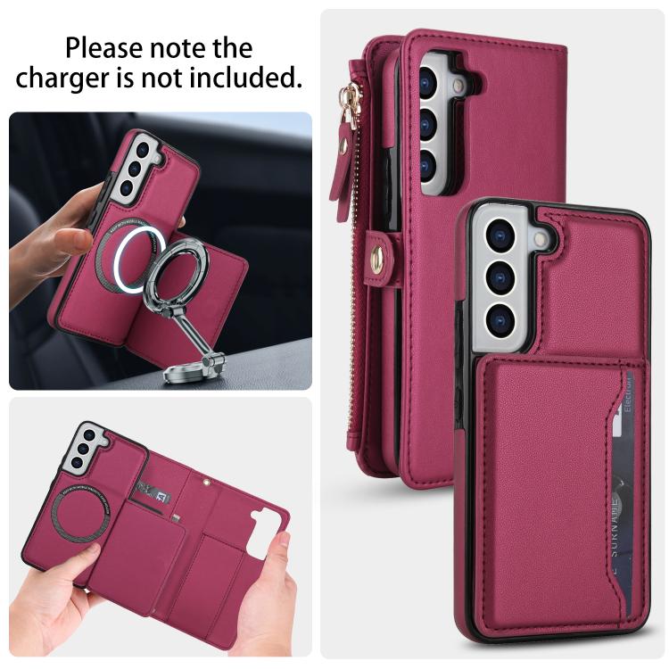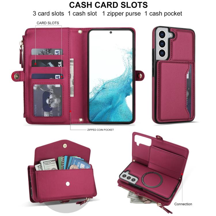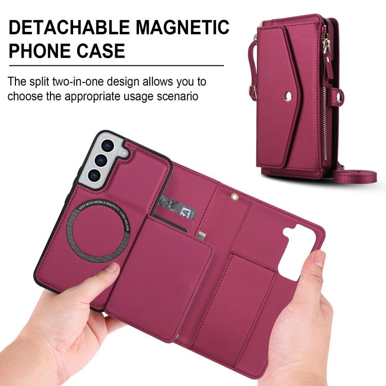 For Samsung Galaxy S22+ 5G Multifunctional Wallet Detachable Leather Phone Case with Lanyard(Red)