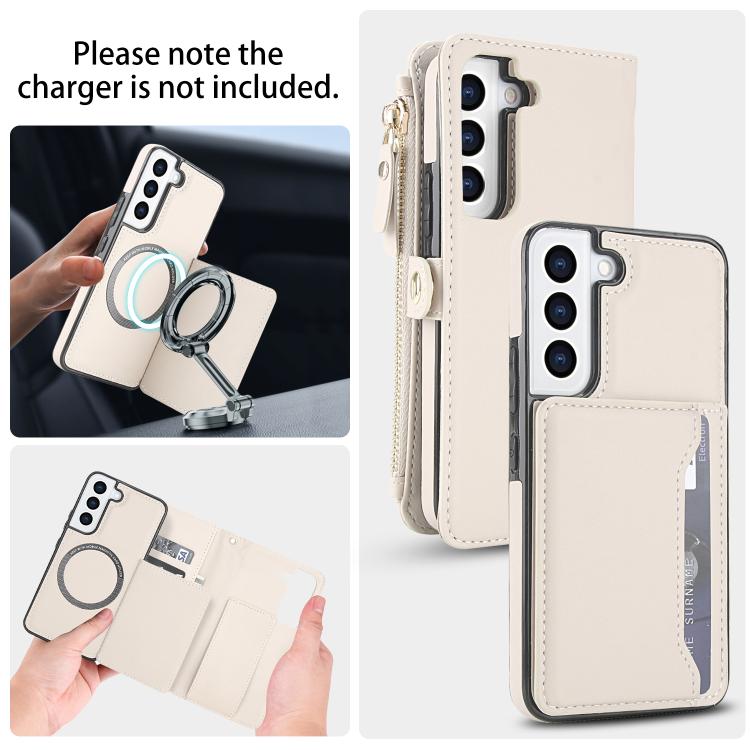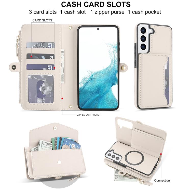 For Samsung Galaxy S22+ 5G Multifunctional Wallet Detachable Leather Phone Case with Lanyard(White)