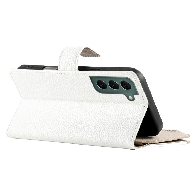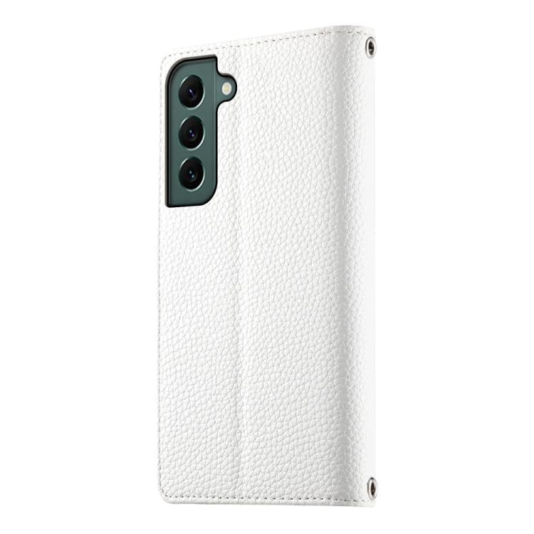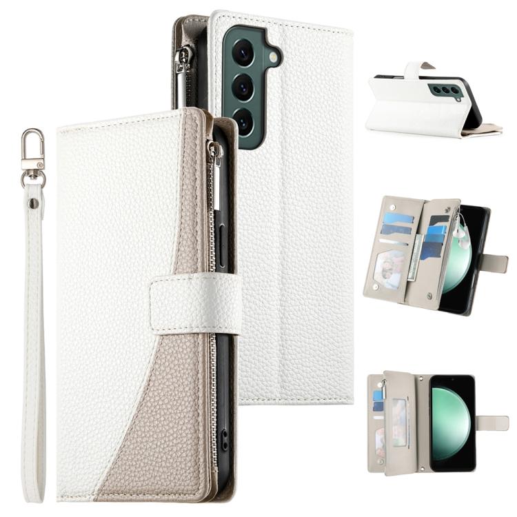 For Samsung Galaxy S22+ 5G Stitching Multi-card Zipper Wallet Leather Phone Case with Short Strap(White)