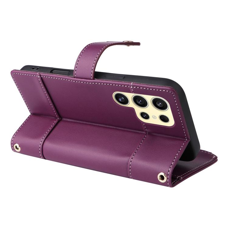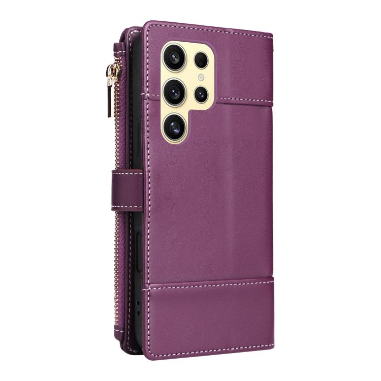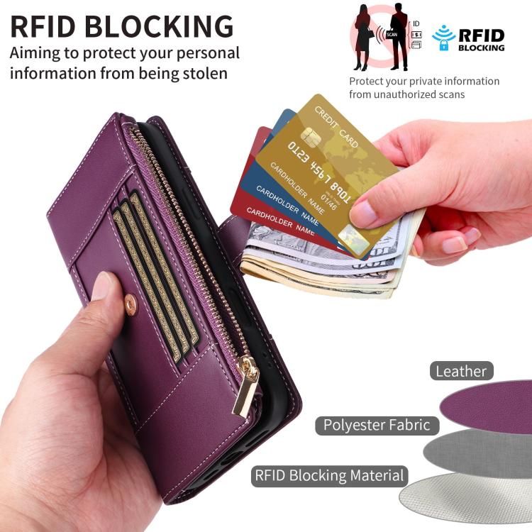 For Samsung Galaxy S22 Ultra 5G Crossbody Strap RFID Blocking Zipper Wallet Leather Phone Case(Purple)