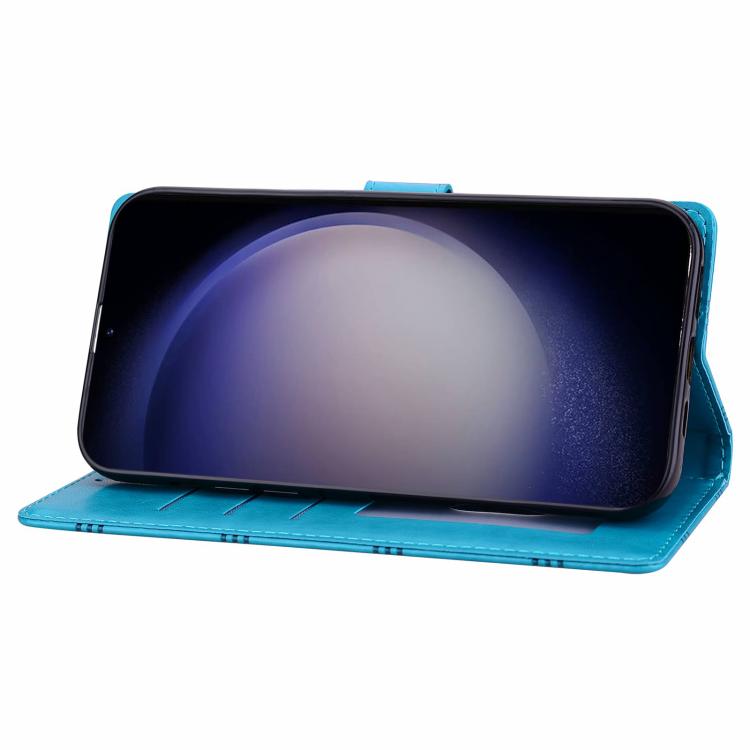 For Samsung Galaxy S22 Ultra 5G Embossed Checkered Leather Phone Case(Blue)