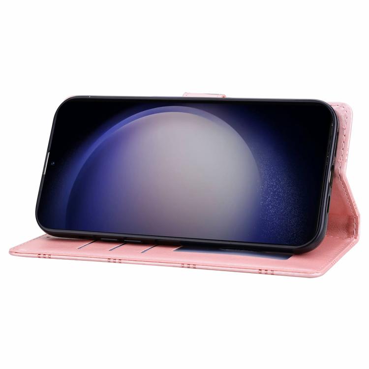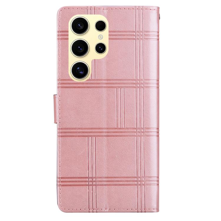 For Samsung Galaxy S22 Ultra 5G Embossed Checkered Leather Phone Case(Pink)