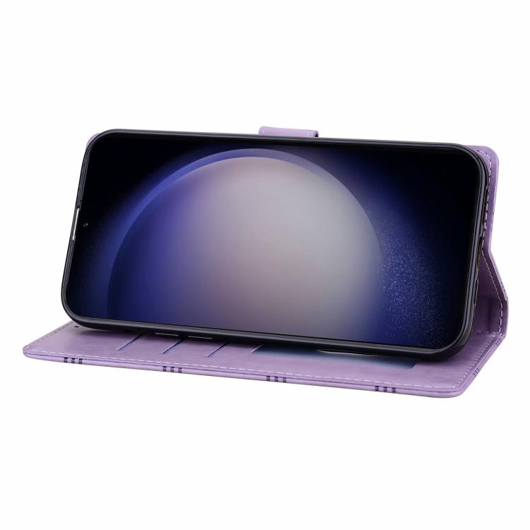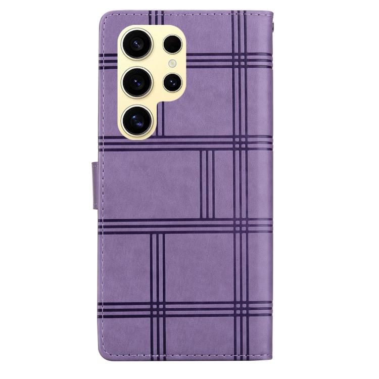 For Samsung Galaxy S22 Ultra 5G Embossed Checkered Leather Phone Case(Purple)