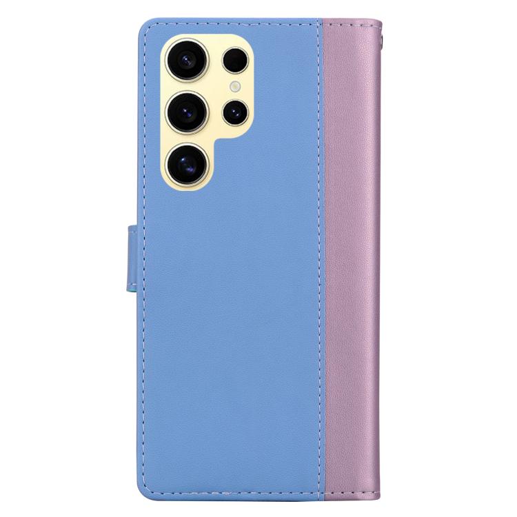 For Samsung Galaxy S22 Ultra 5G Embossed Two-Color Leather Phone Case(Pink Blue)