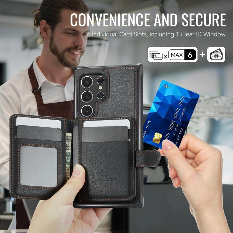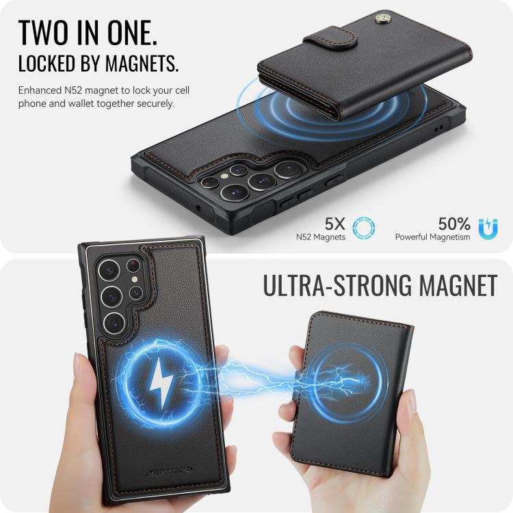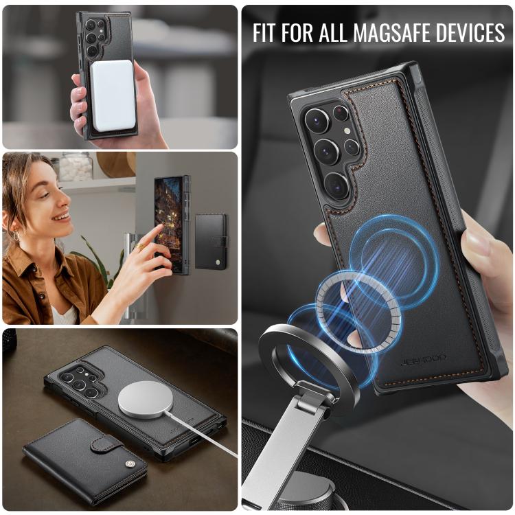 For Samsung Galaxy S22 Ultra 5G JEEHOOD J09 Buckle Card Bag MagSafe Magnetic Style RFID Leather Phone Case(Black)