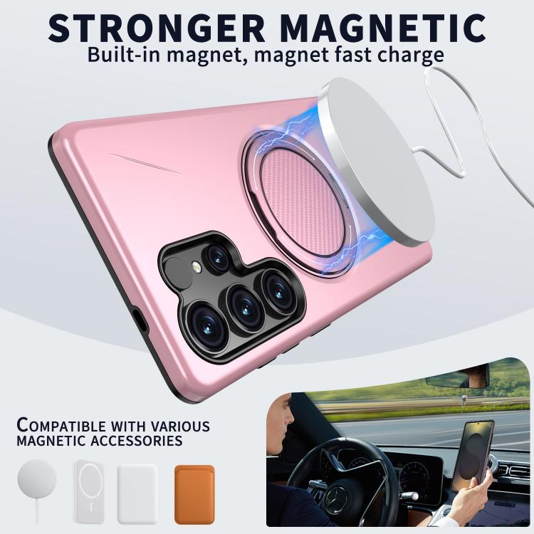 For Samsung Galaxy S22 Ultra 5G Kalebol Magnetic MagSafe Rotation Holder PC Phone Case(Pink)