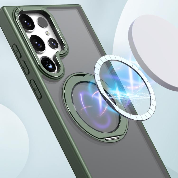 For Samsung Galaxy S22 Ultra 5G kalebol MagSafe Metal Ring Holder Phone Case(Green)
