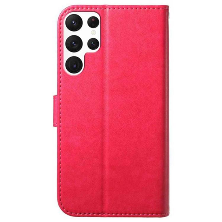 For Samsung Galaxy S22 Ultra 5G Lambskin 8-card Slot Leather Phone Case(Rose Red)