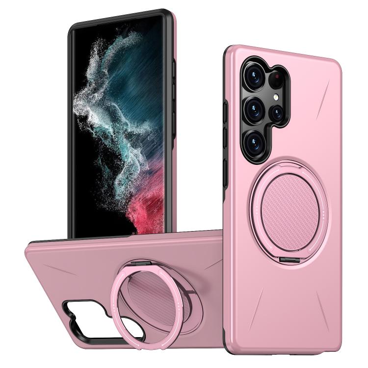 For Samsung Galaxy S22 Ultra 5G Metal Rotation Holder MagSafe TPU Hybrid PC Phone Case(Pink)