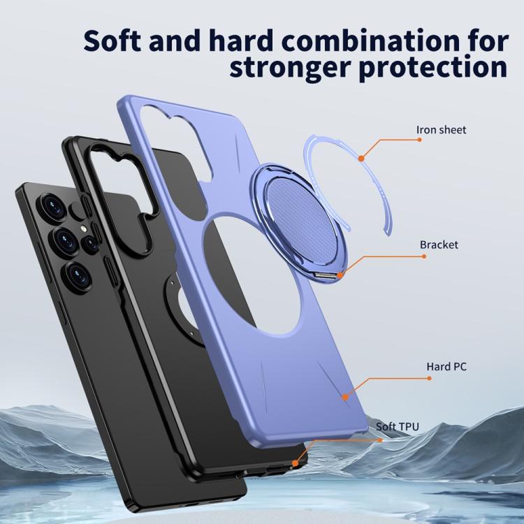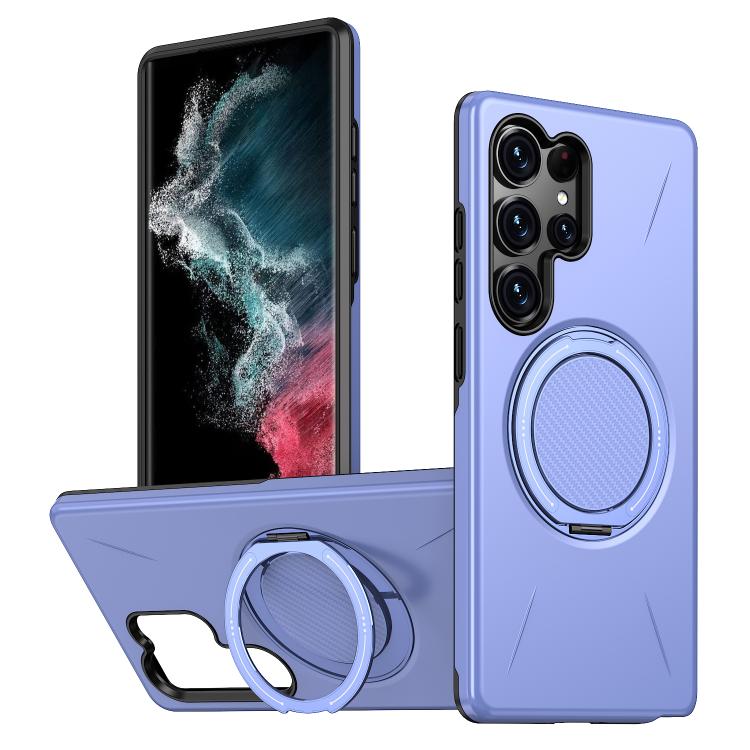 For Samsung Galaxy S22 Ultra 5G Metal Rotation Holder MagSafe TPU Hybrid PC Phone Case(Purple)