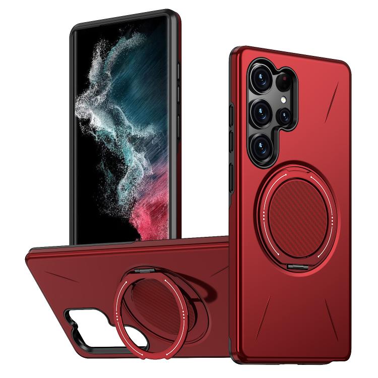 For Samsung Galaxy S22 Ultra 5G Metal Rotation Holder MagSafe TPU Hybrid PC Phone Case(Red)