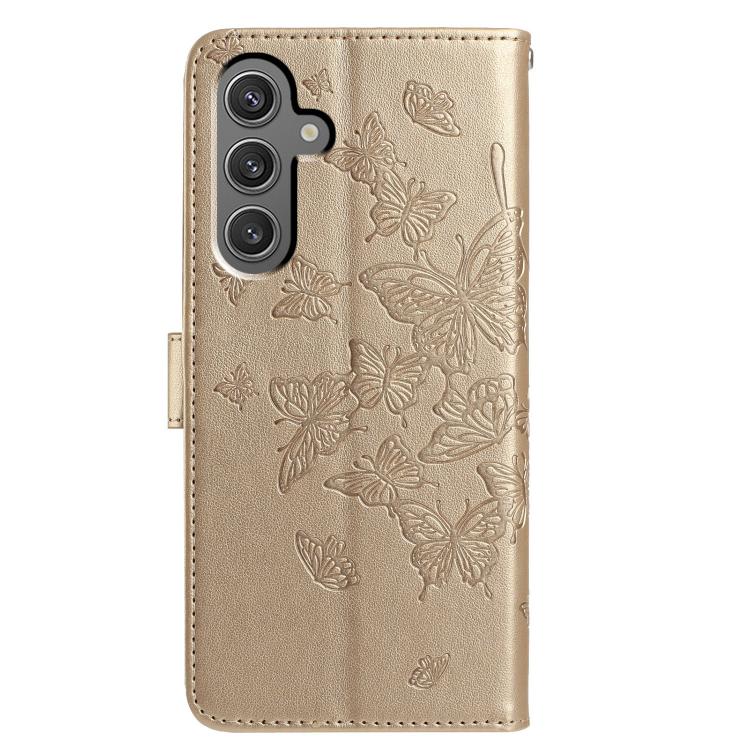 For Samsung Galaxy S23 FE 5G Butterfly Flutter Pattern Embossed Leather Phone Case(Gold)