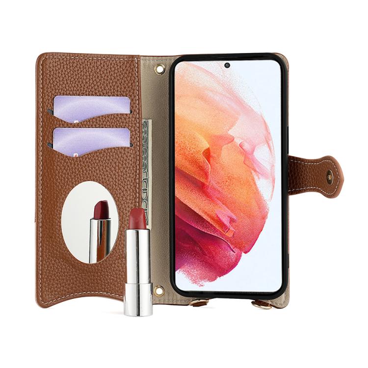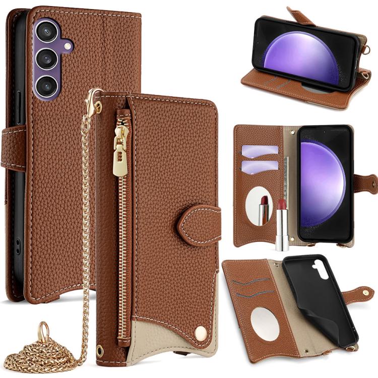 For Samsung Galaxy S23 FE 5G Crossbody Chain Fishtail Litchi Leather Phone Case(Brown)