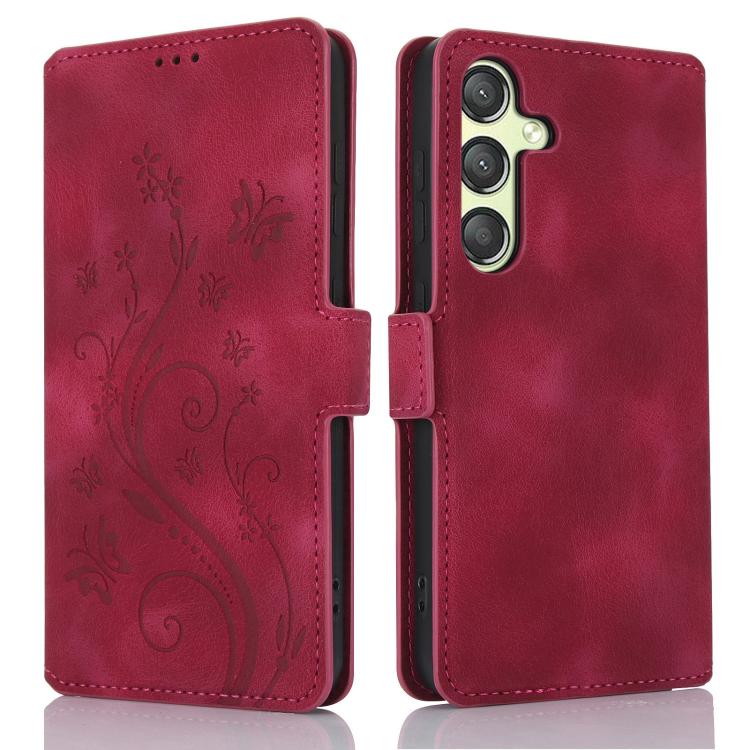 For Samsung Galaxy S23 FE 5G Dreamy Butterfly Love Flower Embossed Leather Phone Case(Red)