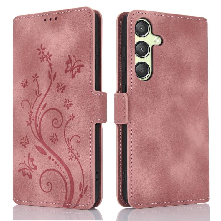 For Samsung Galaxy S23 FE 5G Dreamy Butterfly Love Flower Embossed Leather Phone Case(Rose Gold)
