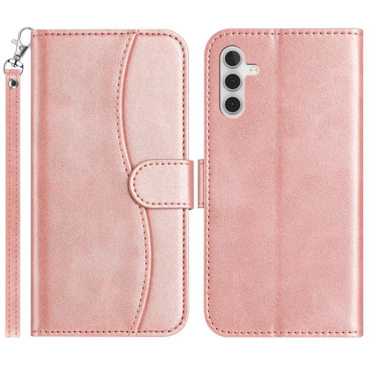 For Samsung Galaxy S23 FE 5G Dual-Folded S-shape Leather Phone Case(Rose Gold)