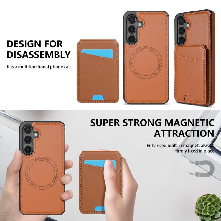 For Samsung Galaxy S23 FE 5G Skin Feel Detachable Card Bag Magsafe Phone Case(Brown)