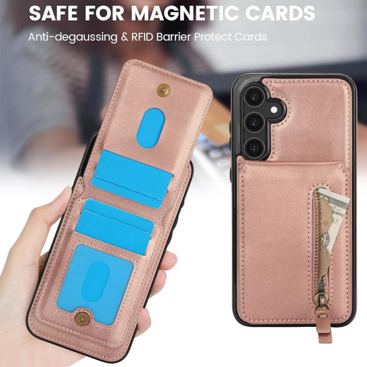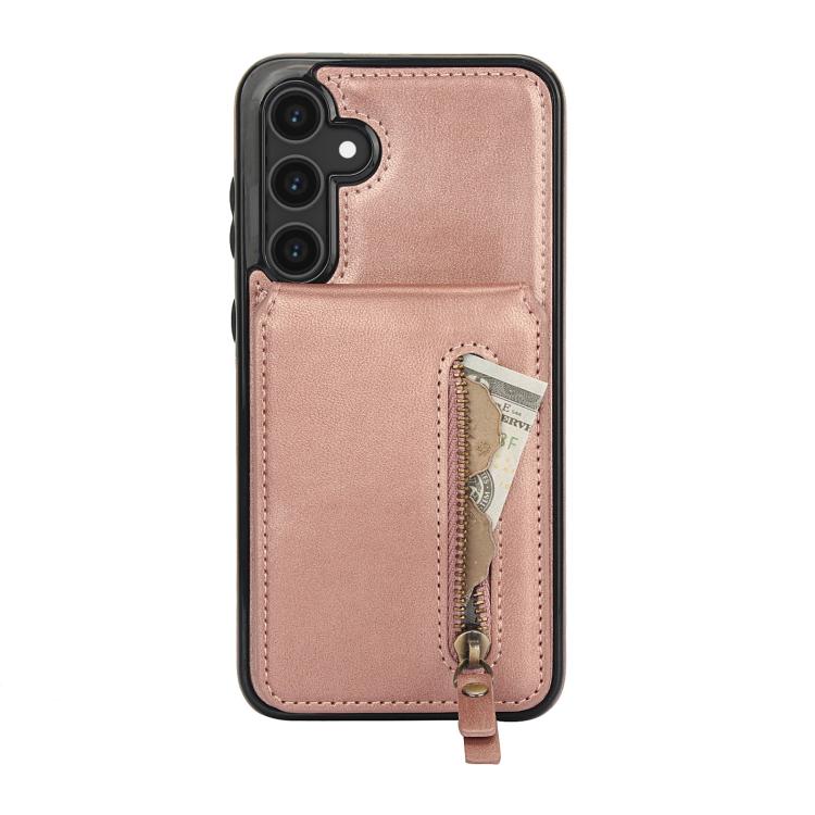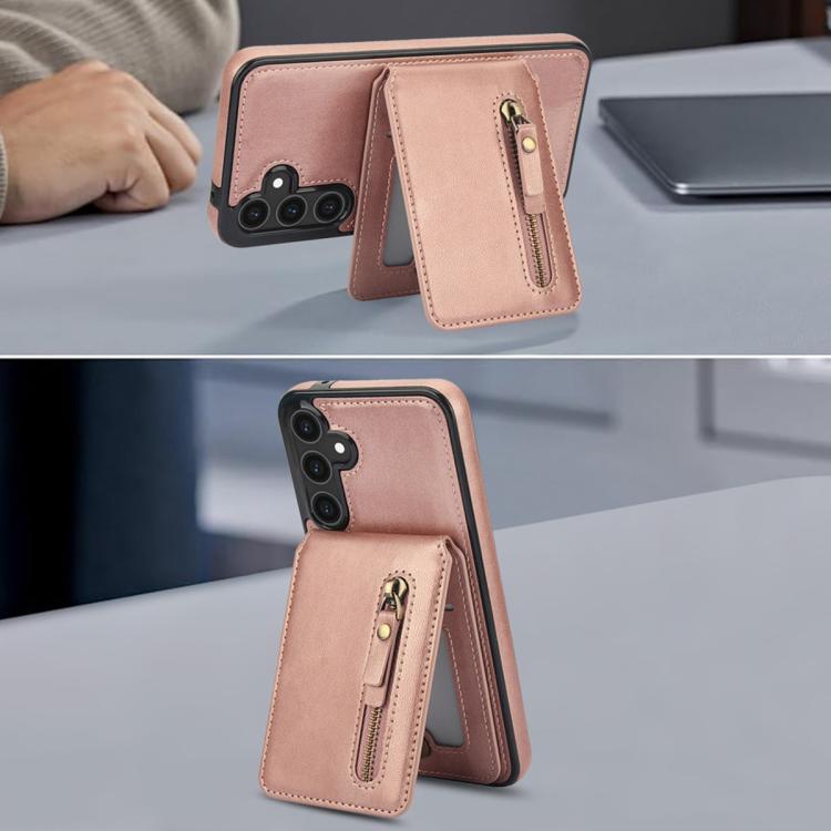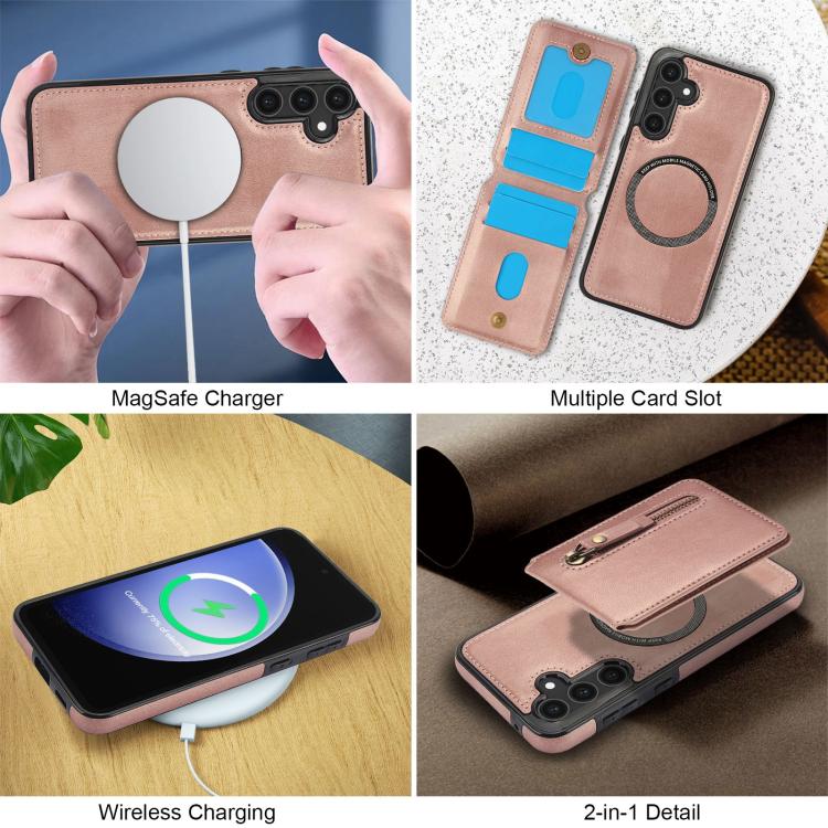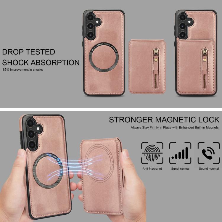 For Samsung Galaxy S23 FE 5G Zipper Wallet Split MagSafe Leather Back Phone Case(Rose Gold)