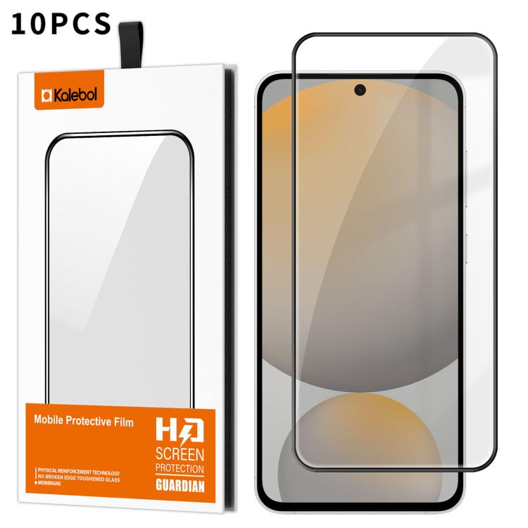 For Samsung Galaxy S24 FE 5G 10pcs Kalebol High-Aluminum Screen-Printed Full-Coverage Anti-Fingerprint Black-Bordered HD Tempered Glass Film