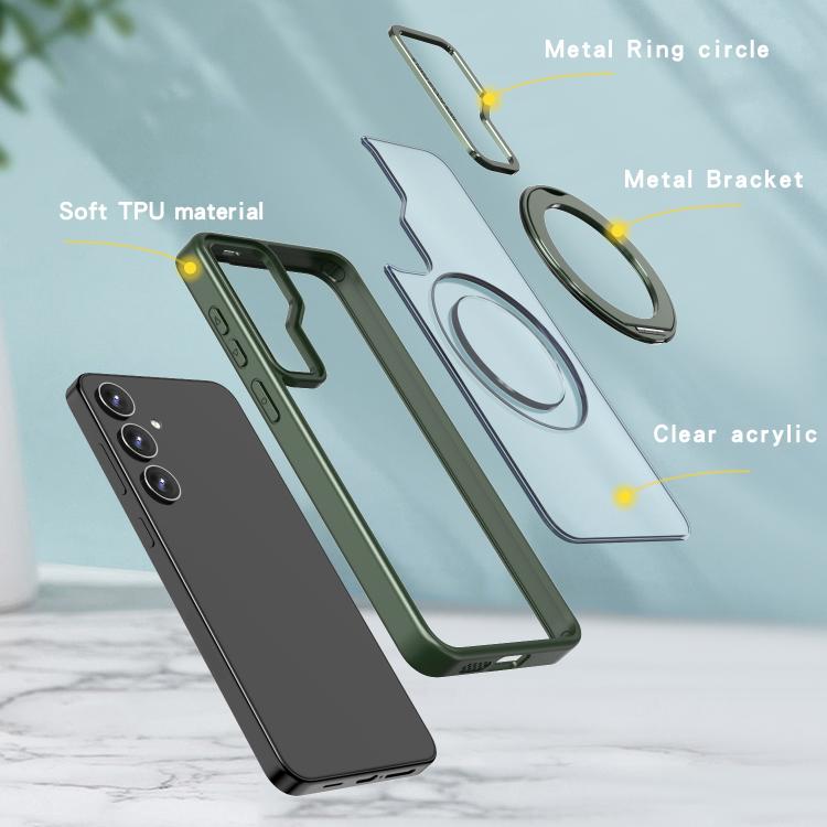 For Samsung Galaxy S24 FE 5G kalebol MagSafe Metal Ring Holder Phone Case(Green)