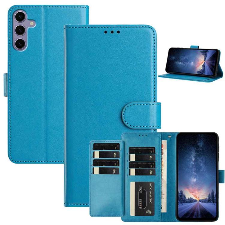 For Samsung Galaxy S24 FE 5G Lambskin 8-card Slot Leather Phone Case(Light Blue)
