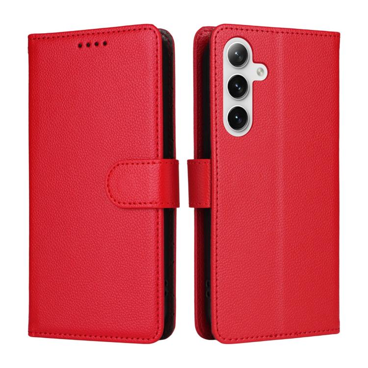 For Samsung Galaxy S24 FE 5G Litchi Texture RFID Blocking 3-Card Wallet Leather Phone Case(Red)