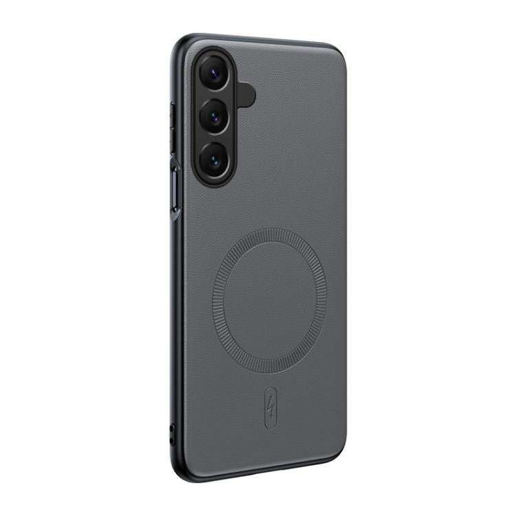 For Samsung Galaxy S24 FE 5G Plain Leather MagSafe Shockproof Phone Case(Gray)