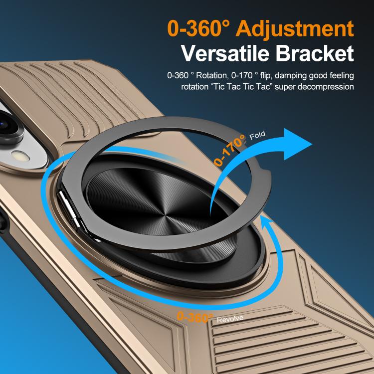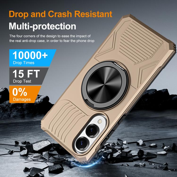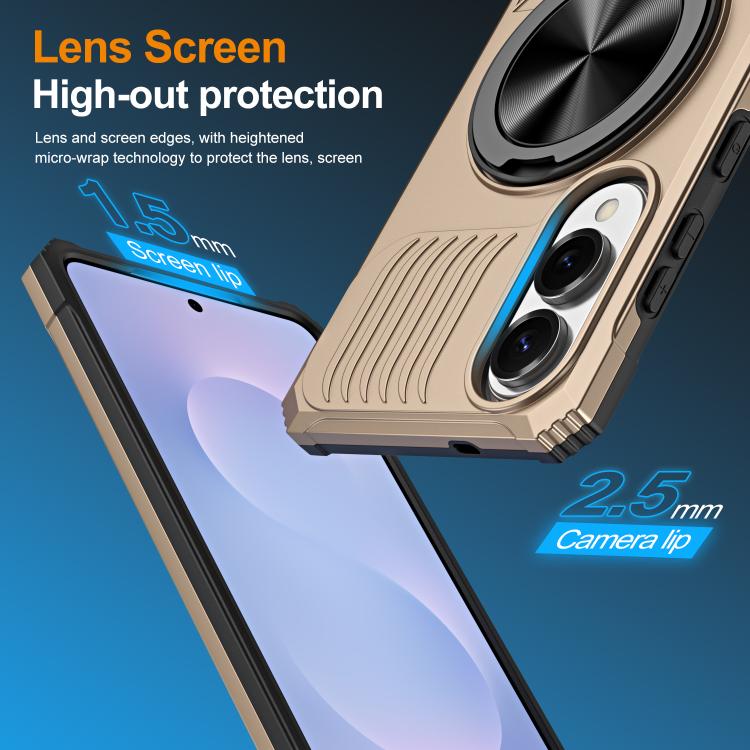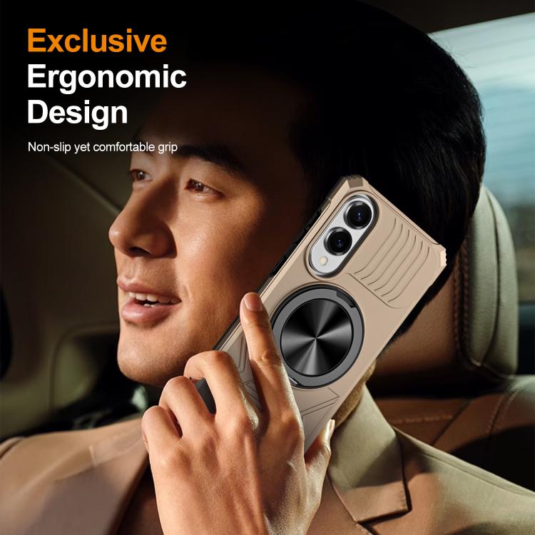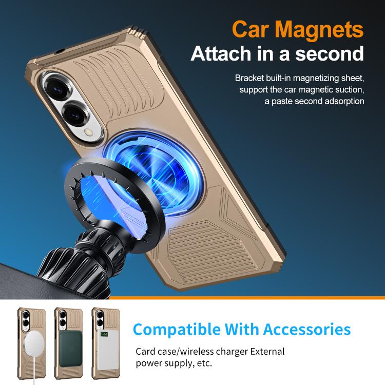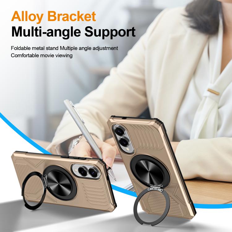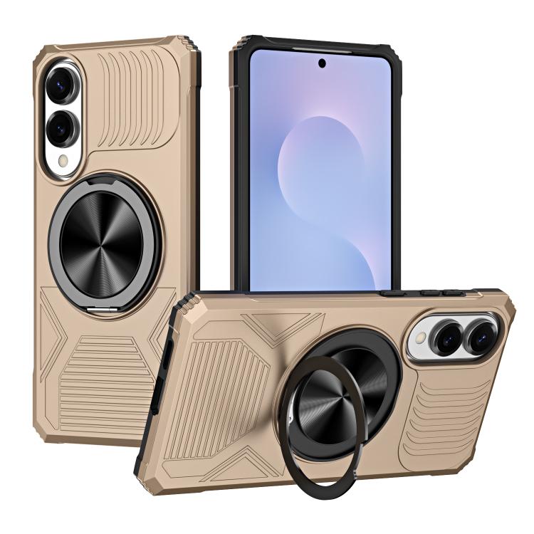 For Samsung Galaxy S25 Edge 5G Alloy Rotating Holder MagSafe Shockproof Phone Case(Gold)