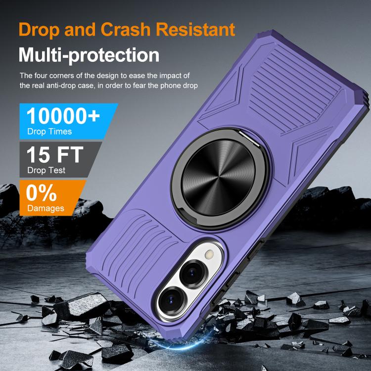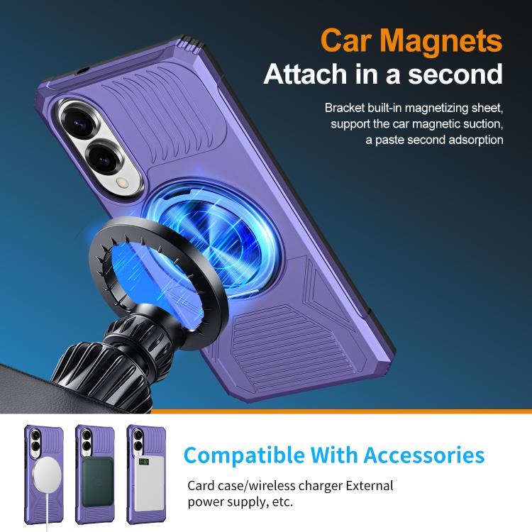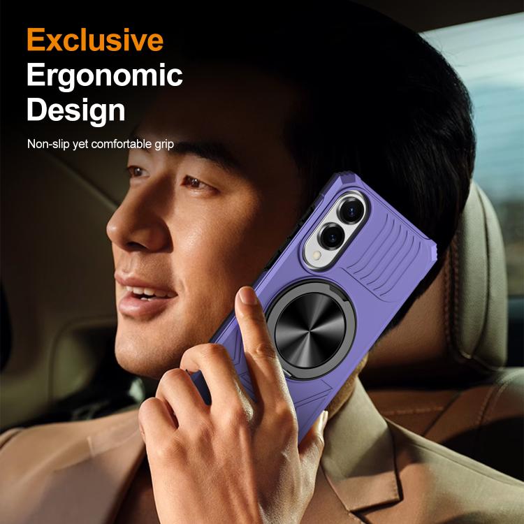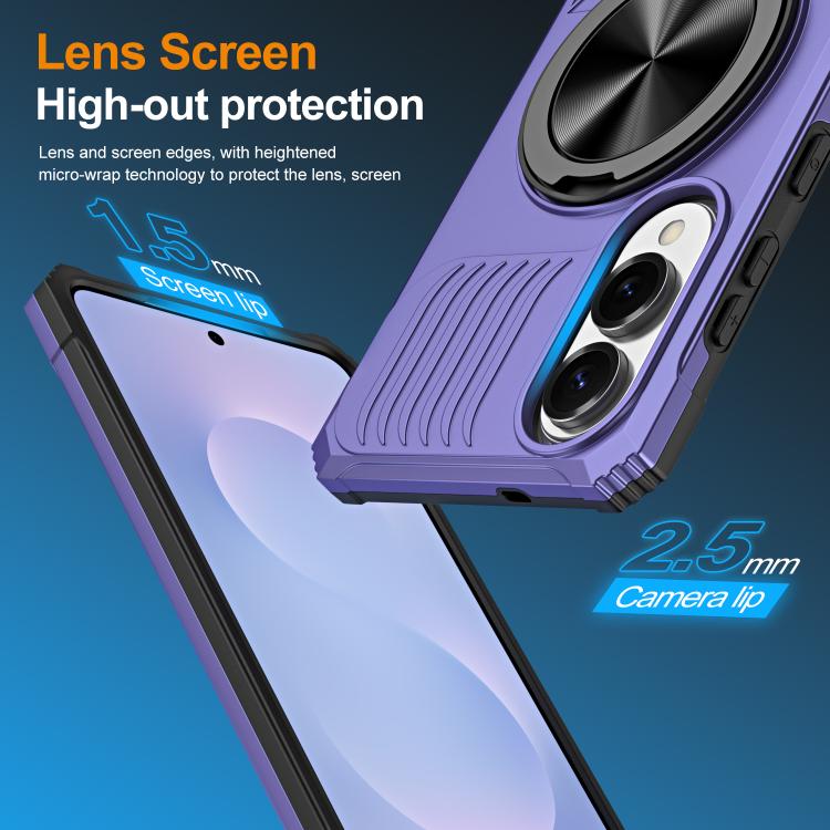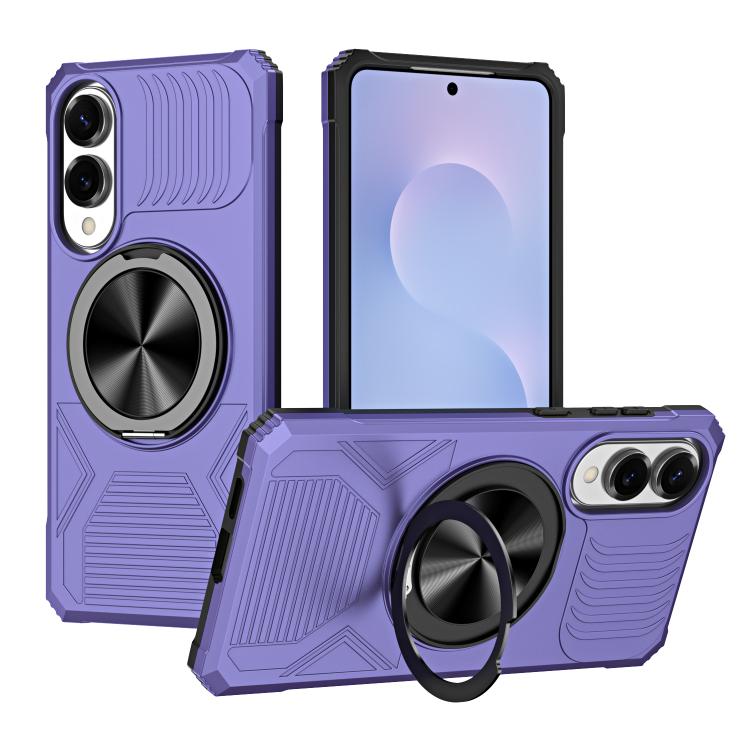For Samsung Galaxy S25 Edge 5G Alloy Rotating Holder MagSafe Shockproof Phone Case(Violet)