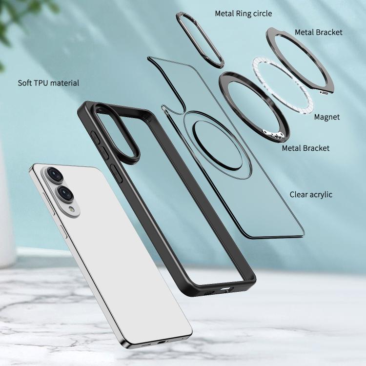 For Samsung Galaxy S25 Edge 5G kalebol MagSafe Metal Ring Holder Phone Case(Black)