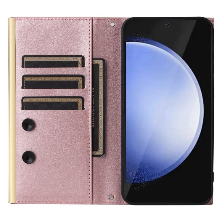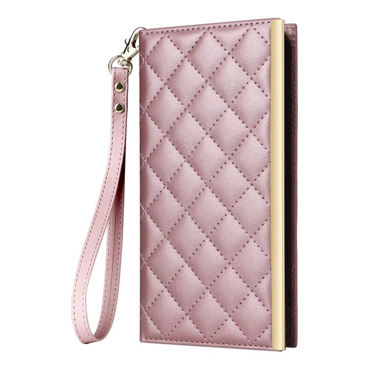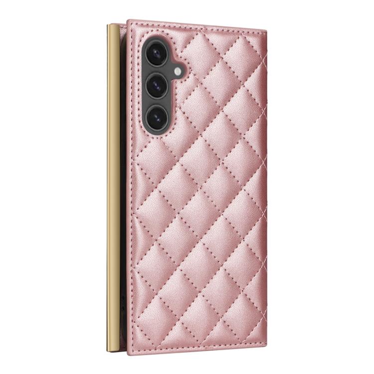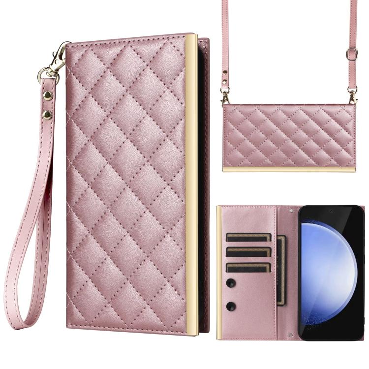 For Samsung Galaxy S25 FE 5G Crossbody Rhombic Sucker Leather Phone Case(Rose Gold)
