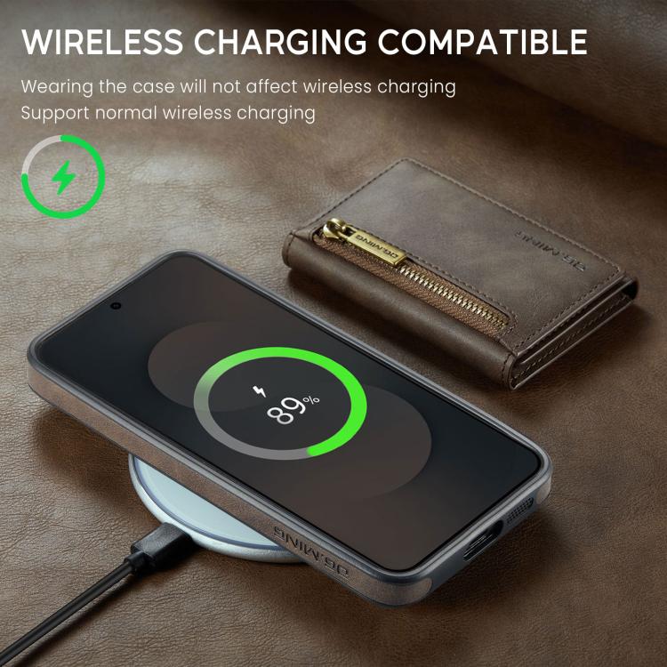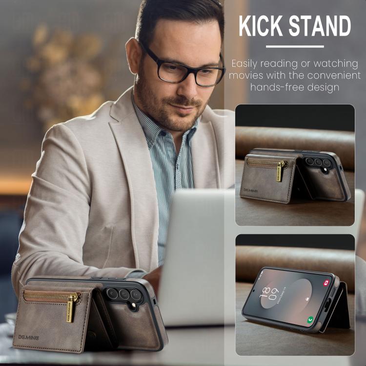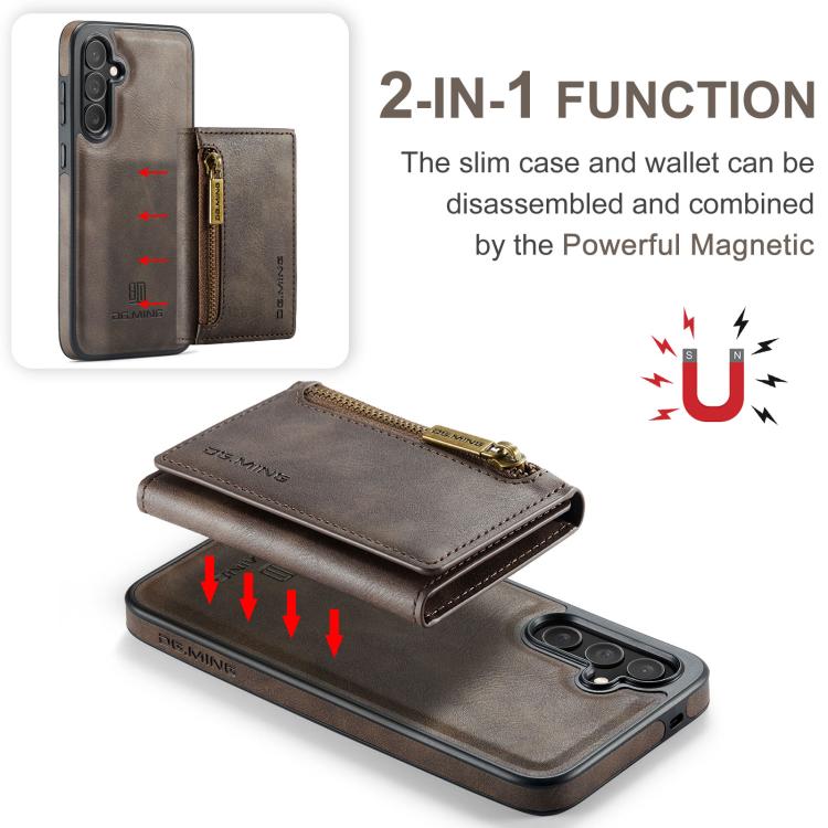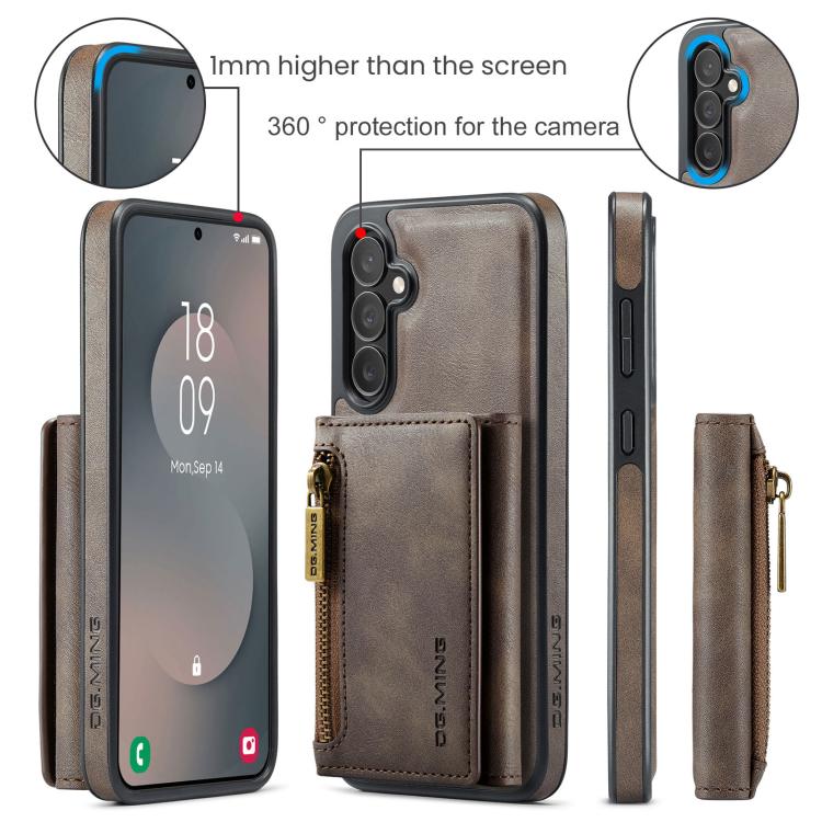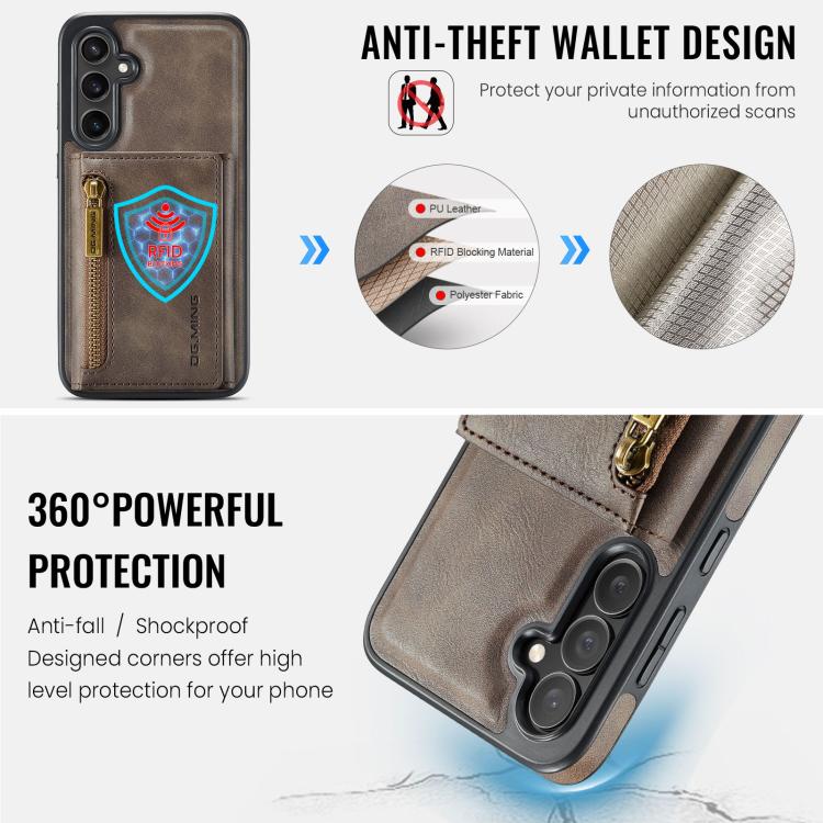 For Samsung Galaxy S25 FE 5G DG.MING M5 Series Zip RFID Multi Card Detachable Leather Phone Case(Coffee)